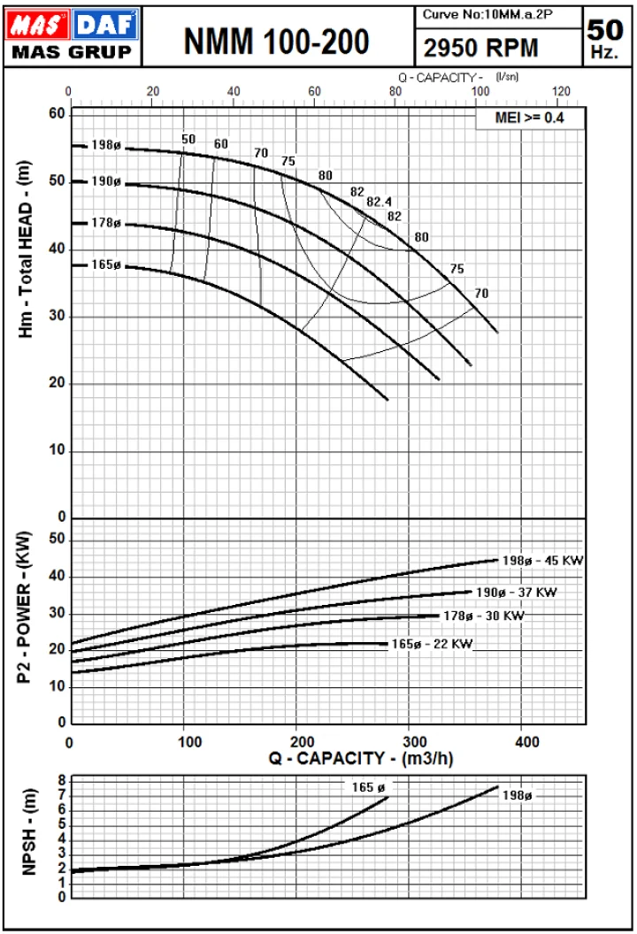 Насосы MasDaf серии NMM - одноступенчатые центробежные насосы моноблочного типа. Имеют торцевое механическое уплотнение в стандартном исполнении. Двигатель и насос являются двумя отдельными узлами с двумя отдельными валами. Стандартные асинхронные двигатели поставляются в комплекте.