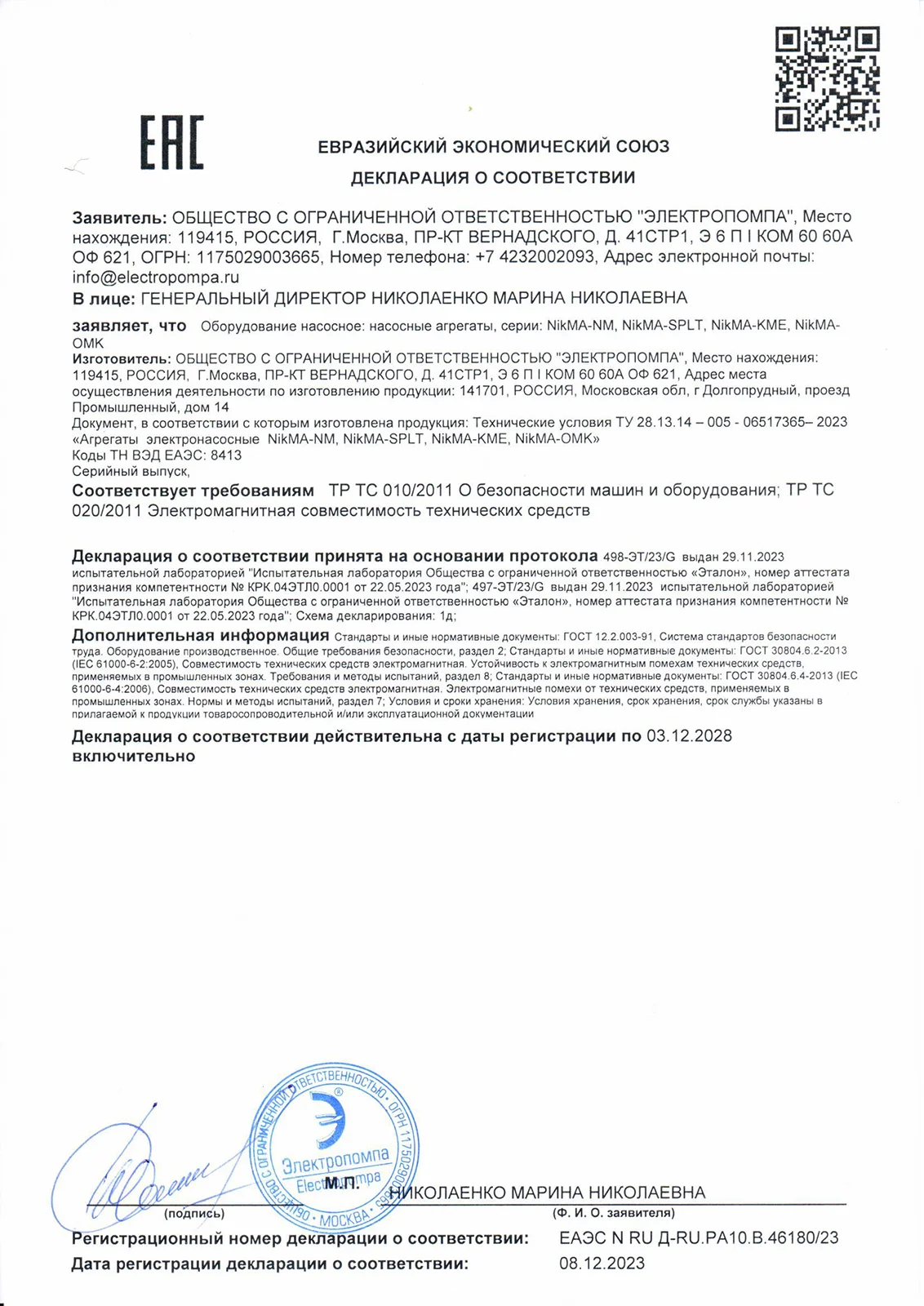 ✅ Насосные агрегаты сертифицированы в соответствии с требованиями ТР ТС 010/2011, ТР ТС 020/2011 и производятся согласно ТУ 28.13.14-005-06517365-2023
